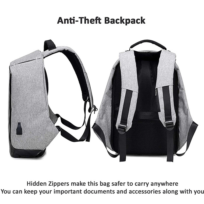 حقيبة ظهر للأعمال مضادة للسرقة مع منفذ شحن USB / حقيبة ظهر للكمبيوتر المحمول خفيفة الوزن / مقاومة للماء للطلاب ، رجال ونساء - رمادي